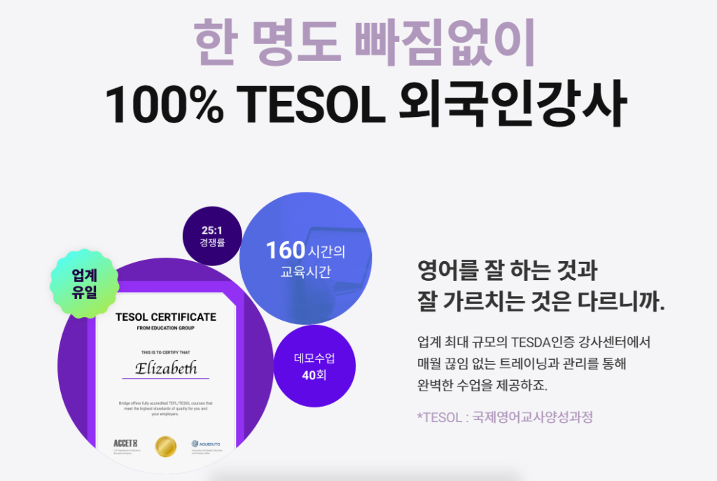 ✅ 둘째, 타협하지 않는 외국인강사진 퀄리티 (TESOL 100%)