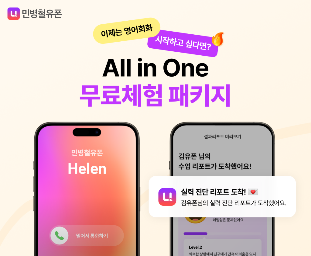 민병철유폰의 AI 예습·복습과 1:1 TESOL 강사 수업을 병행하면 자투리 시간 100% 활용과 실전 감각을 동시에 잡을 수 있습니다.