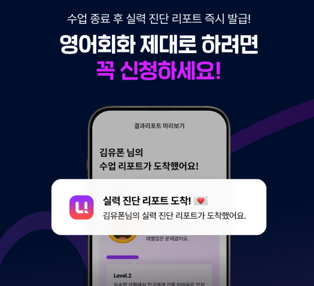 무료체험만으로도 자신의 레벨, 말하기 패턴, 목표 방향을 명확히 알 수 있습니다.
